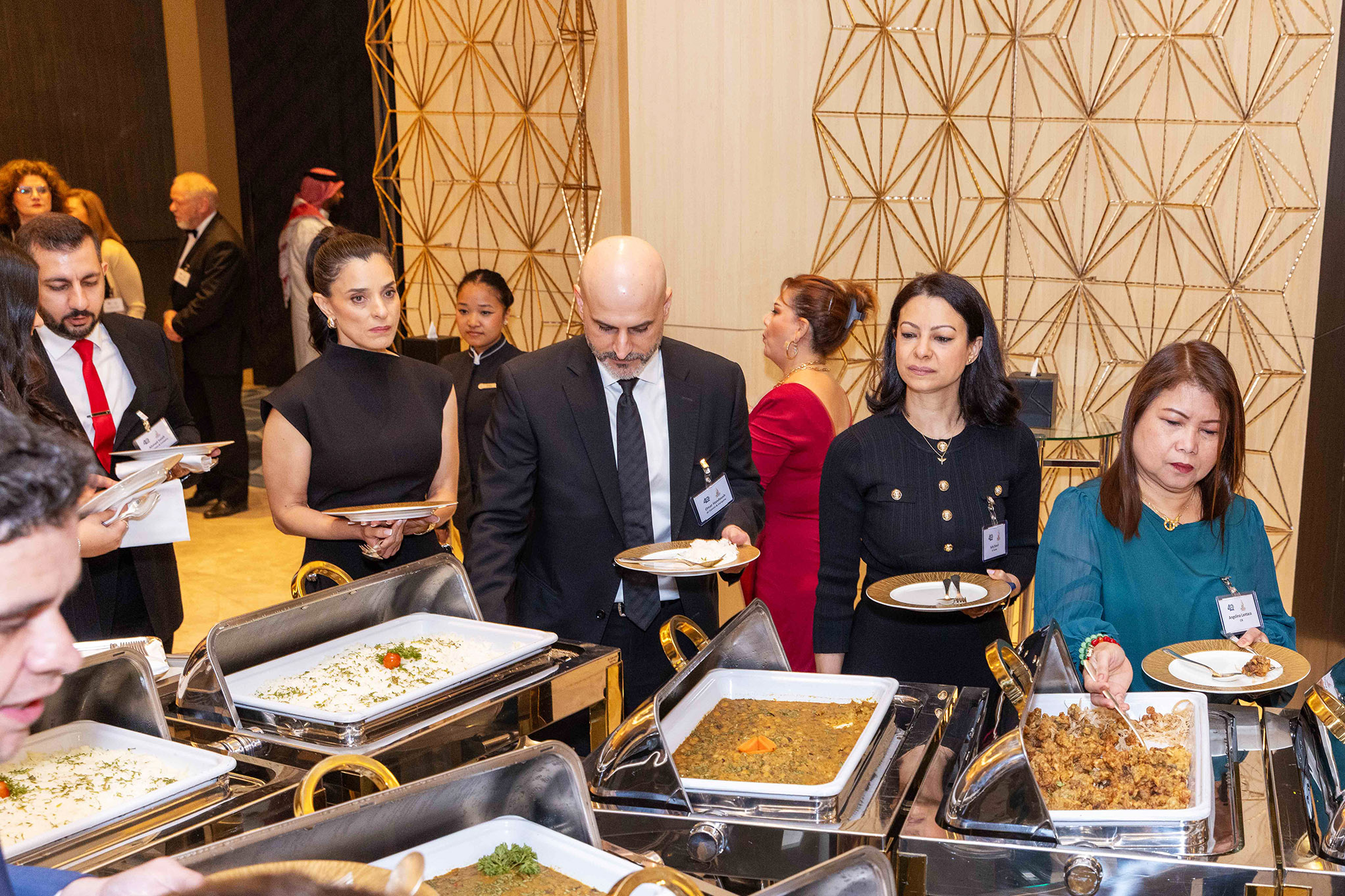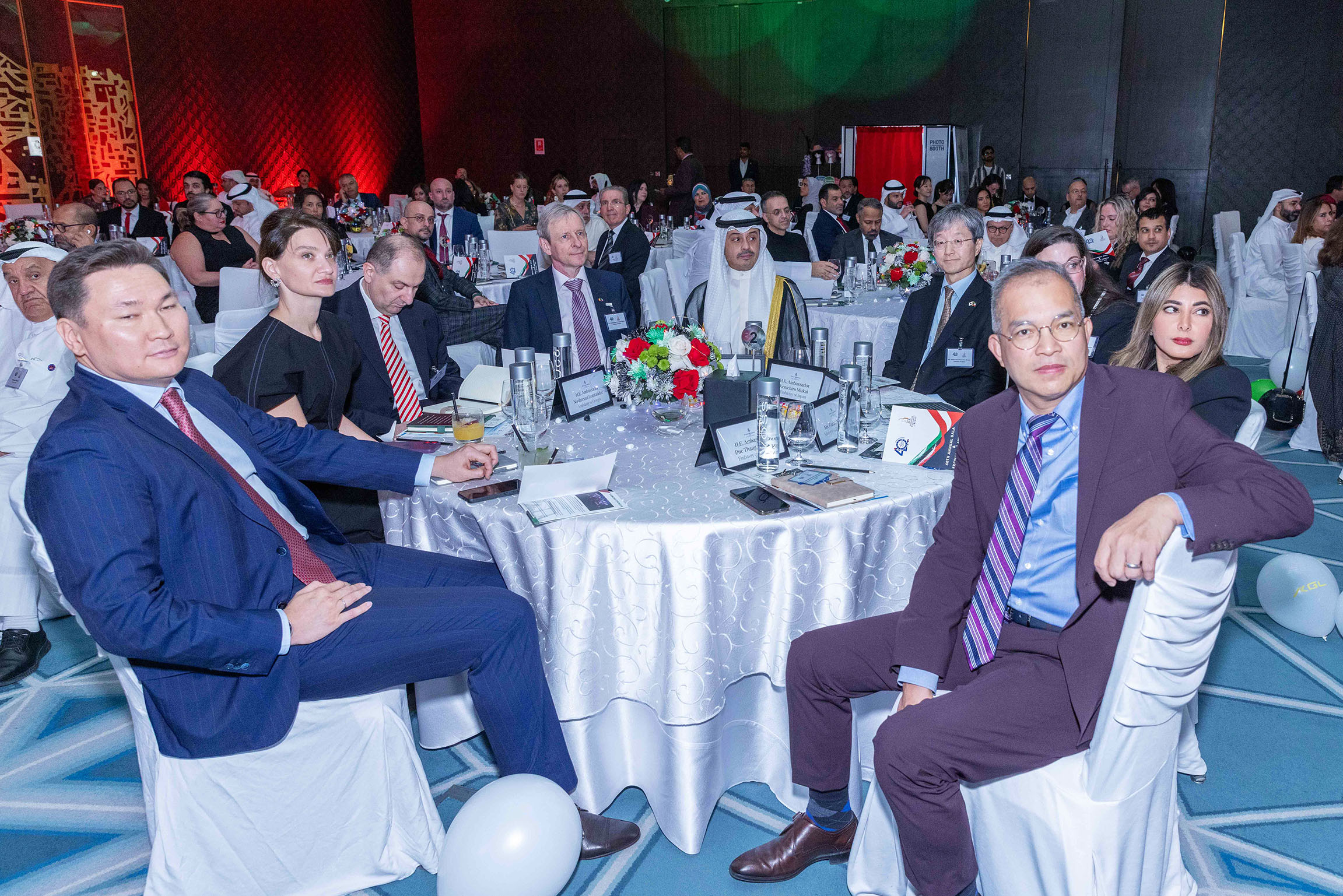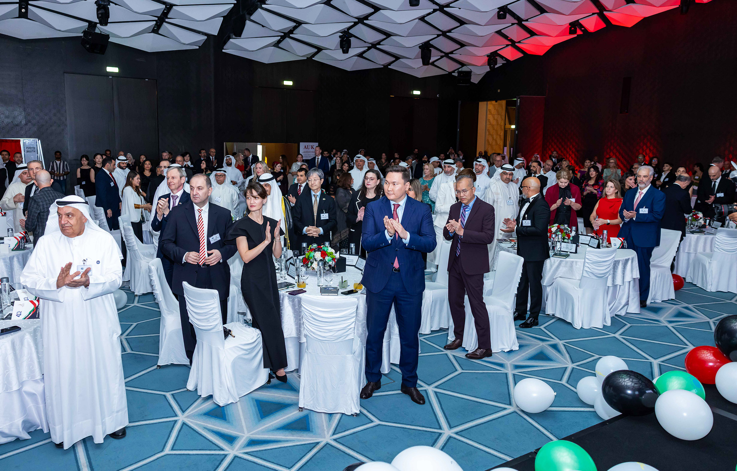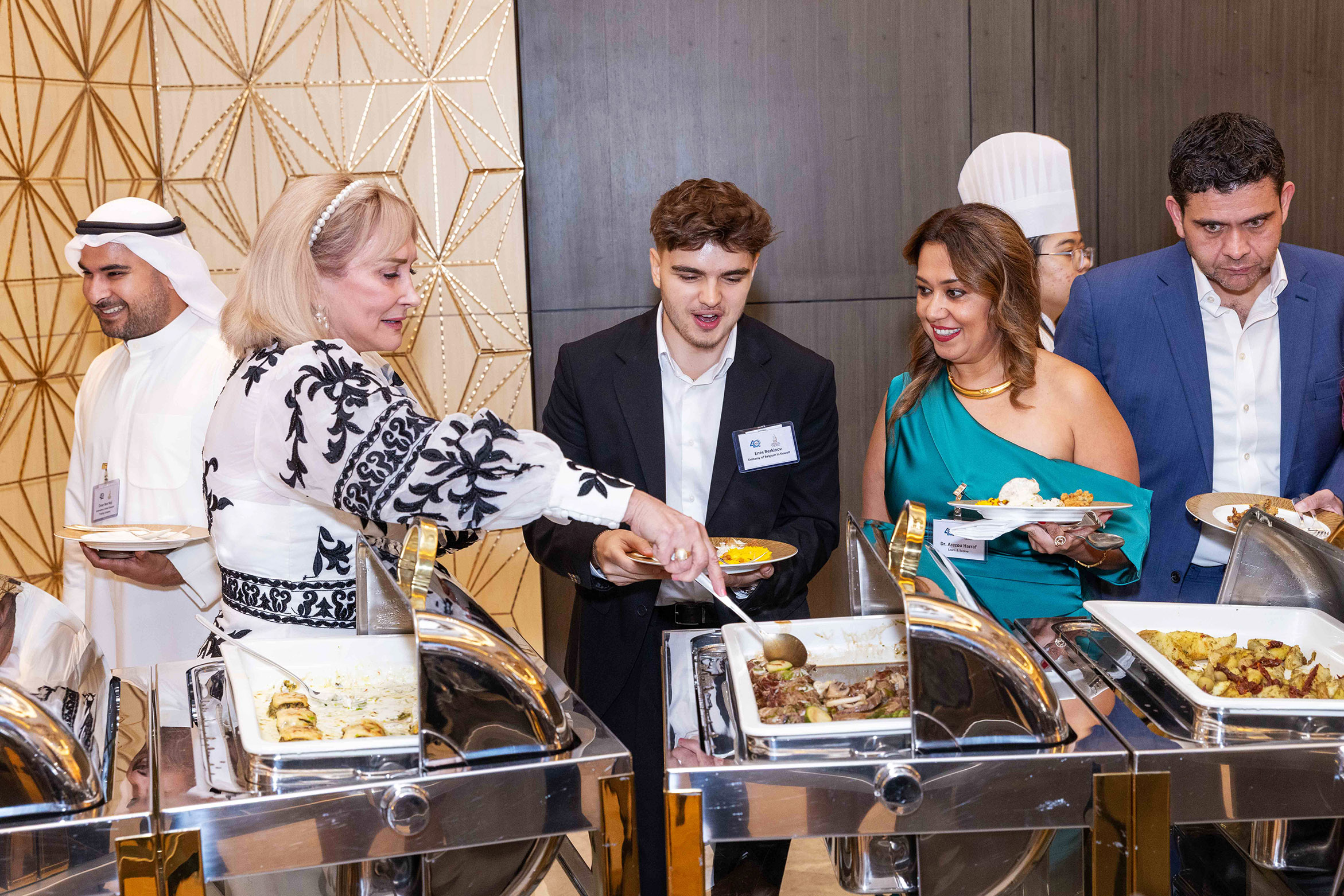 The evening began with a captivating performance by a traditional Kuwaiti band performing the stick dance, followed by welcome remarks from Paola de la Roche, Executive Director of AmCham Kuwait, who invited attendees to leave messages on the commemorative 40th Anniversary Canvas and capture memories at the event’s photo booth.