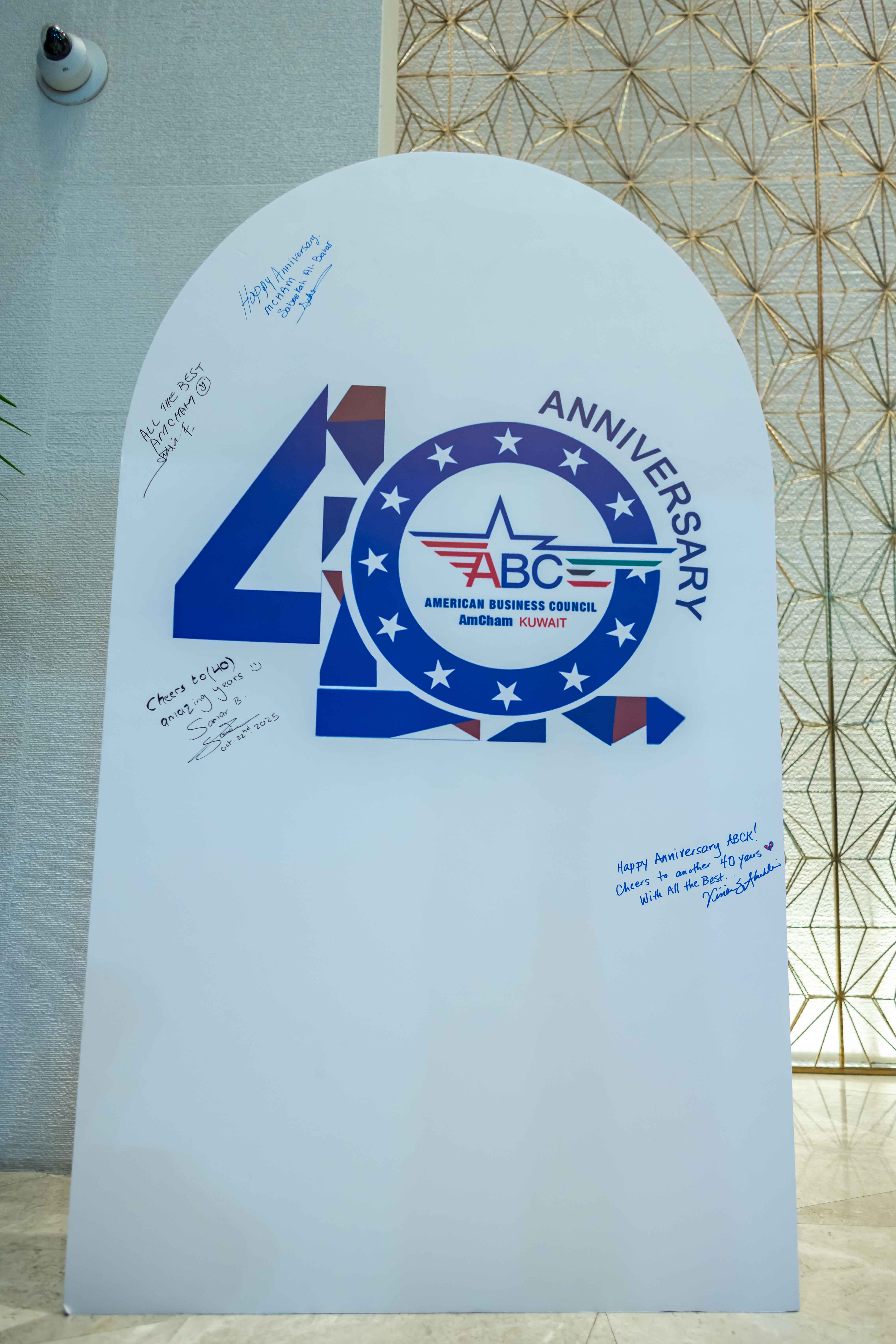 In her closing remarks, Dr. Arezou Harraf thanked all members, sponsors, and partners, emphasizing that AmCham Kuwait’s success over four decades has been built on collaboration, inclusion, and shared purpose. Attendees were invited to leave messages on the 40th Anniversary Canvas, creating a lasting keepsake of this milestone celebration.