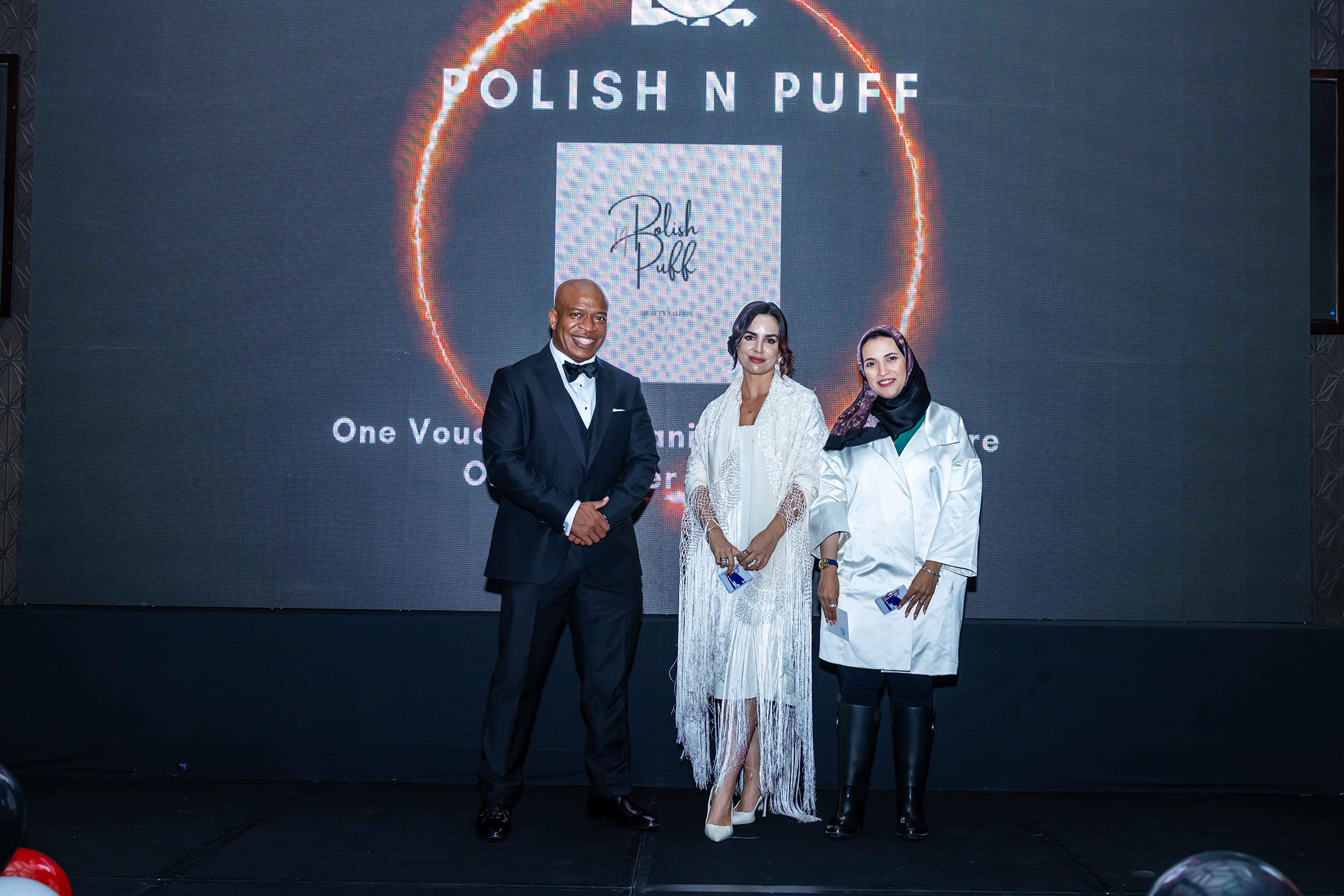 A highlight of the evening was the raffle, showcasing the generosity of AmCham Kuwait’s sponsors and partners. Attendees had the chance to win a variety of prizes, including vouchers from Best Al Yousifi, dining and experience vouchers from Crowne Plaza Farwaniya, exclusive dining experiences from Four Seasons Hotel Kuwait, a selection of dining and activity vouchers from Holiday Inn Salmiya, a hotel stay and theme night experiences from Hyatt Regency Al Kout Mall, home appliance vouchers from Union Trading Company (UTC), lifestyle and shopping vouchers from Alshaya Group, premium gifts from Desert Star Trading Co., snack boxes from Kitco Company, shopping vouchers from Monoprix, beauty vouchers from Polish & Puff Beauty Salon, and the grand prize round-trip ticket to the United States courtesy of IFA International Travel & Tourism. Winners were celebrated on stage alongside representatives from each sponsor.